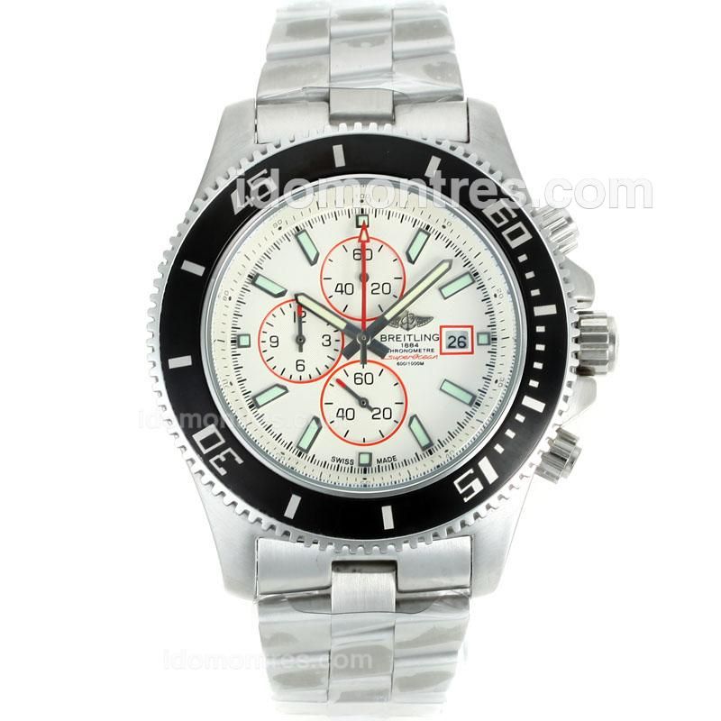 - Breitling Super Ocean Working Chronograph Black Bezel with White Dial S/S-Red Needles