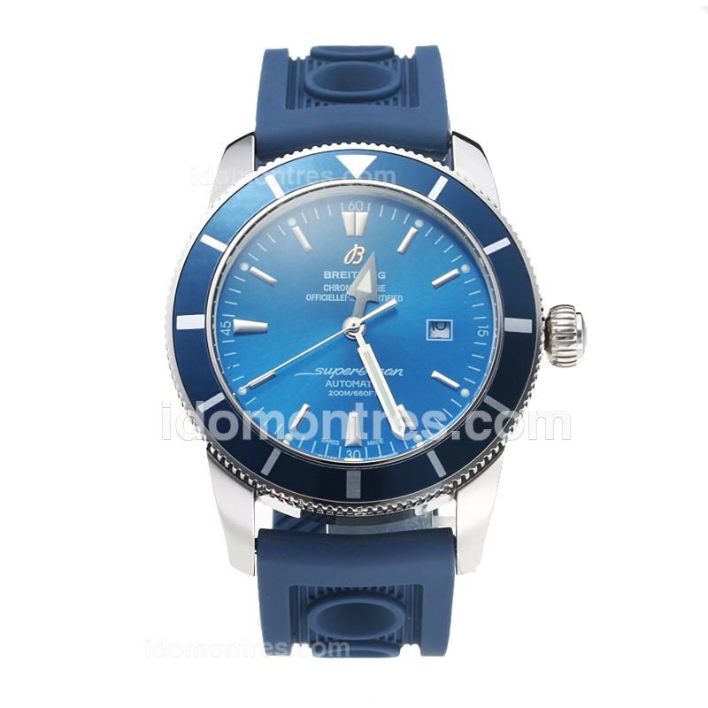 - Breitling Super Ocean Automatic Blue Bezel with Blue Dial-Rubber Strap