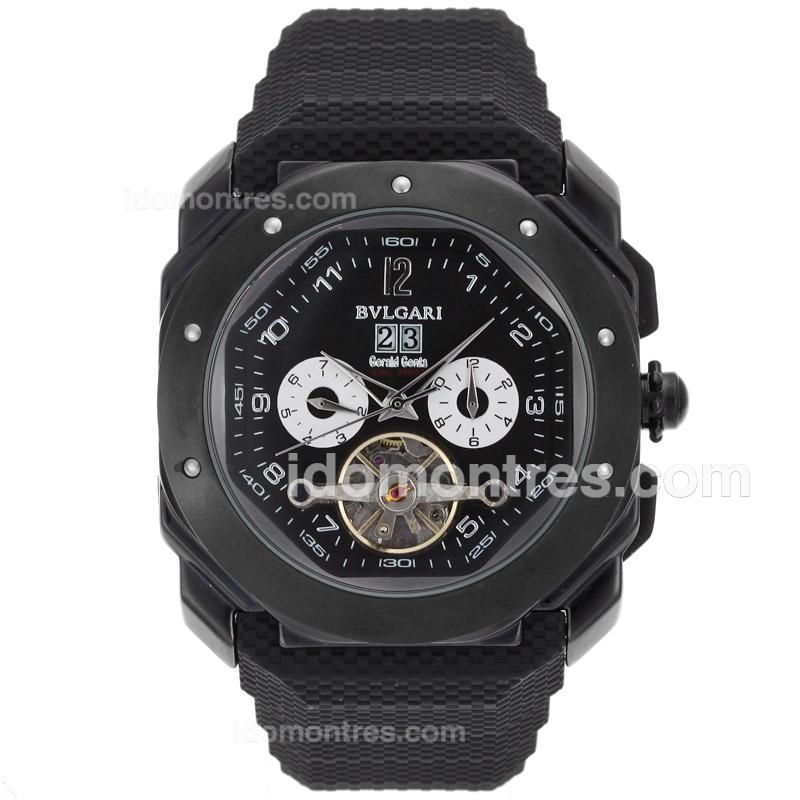 - Bvlgari Gerald Genta Tourbillon Automatic PVD Case with Black Dial-Rubber Strap