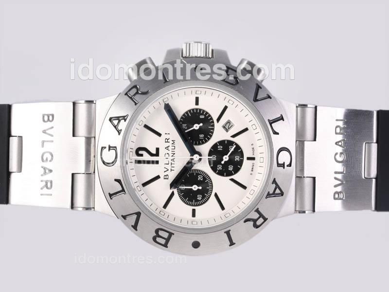 - Bvlgari Diagono Aluminium Working Chrono with White Dial-Same Structure As 7750-High Quality