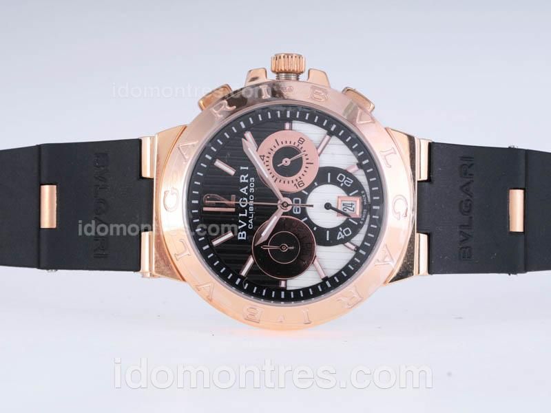 - Bvlgari Diagono Calibro 303 Working Chronograph Rose Gold Case-Rubber Strap