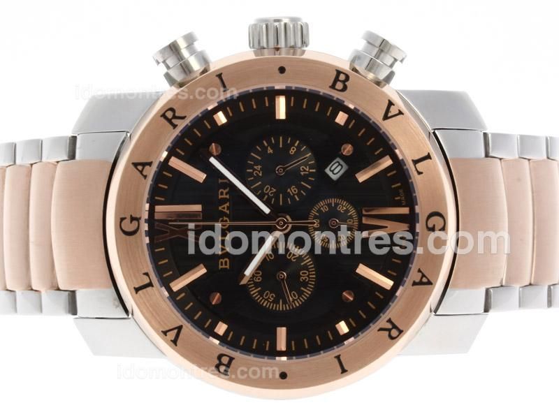 - Bvlgari Diagono Aluminium Working Chrono PVD Case with Black Dial-Same Chassis As 7750-High Quality