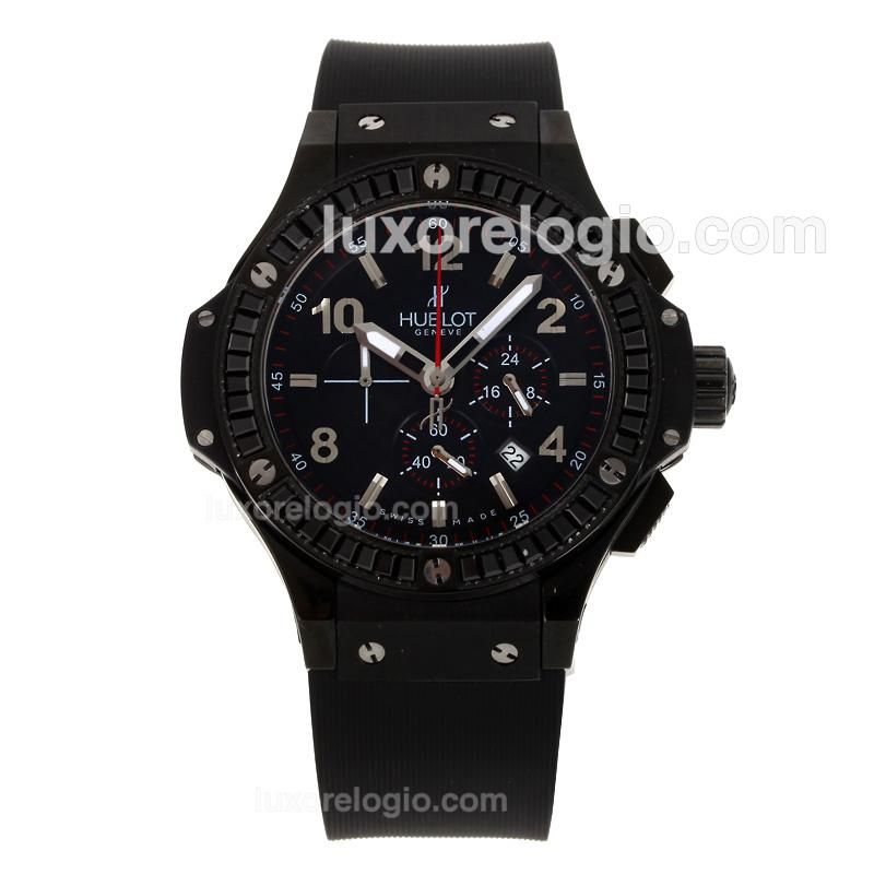 - Hublot Big Bang Tuiga 1909 Working Chronograph PVD Case Diamond Bezel with Black Dial-Rubber Strap