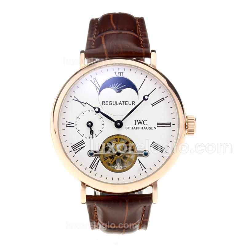 - IWC Regulateur Automatic Two Time Zone Rose Gold Case with White Dial-Brown Leather Strap