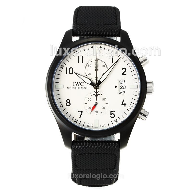 - IWC Top Gun Pilot Working Chronograph PVD Case with White Dial-Black Nylon Strap
