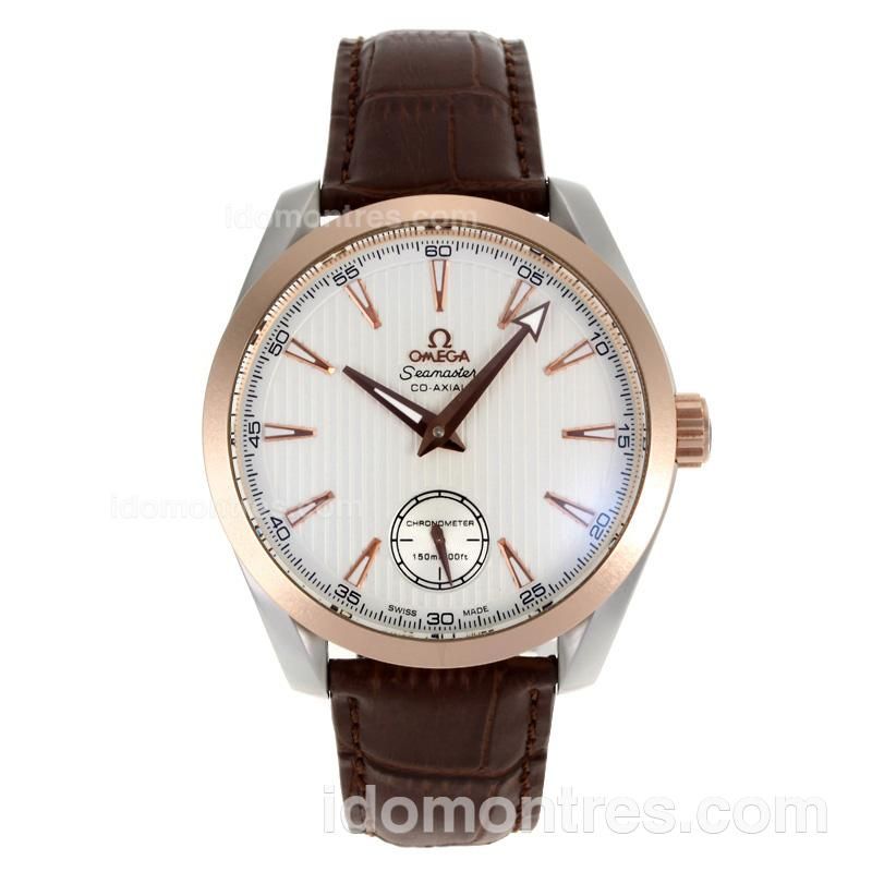 - Omega Seamaster Co-Axial Manual Winding Two Tone Case with White Dial-Leather Strap