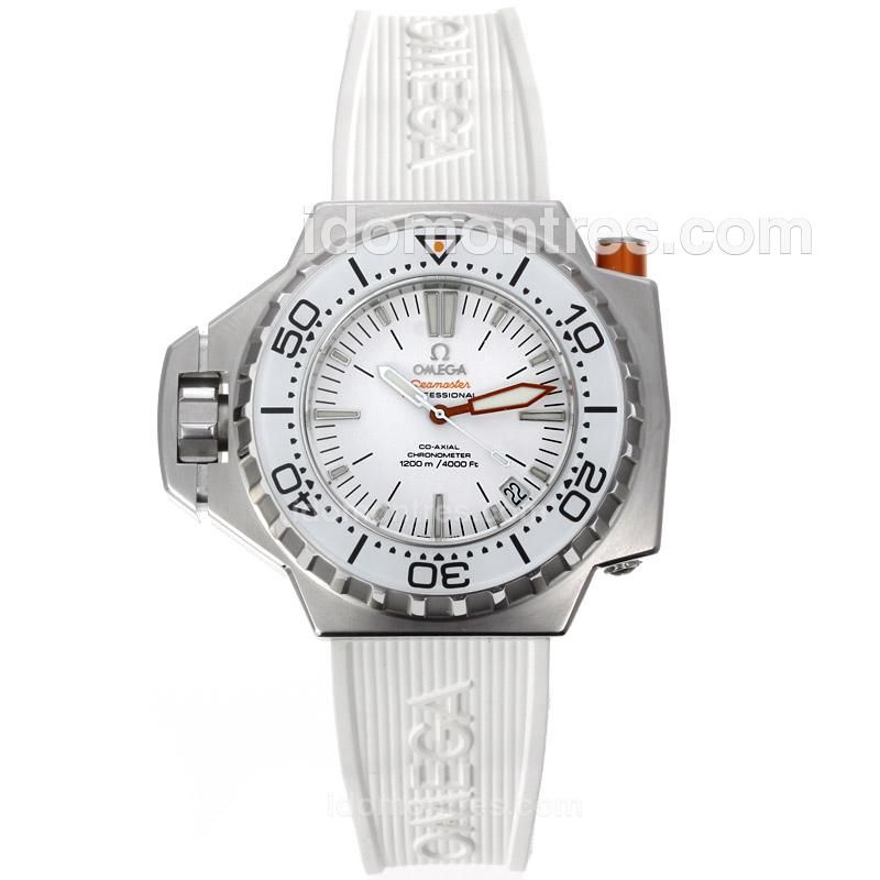 - Omega Seamaster Swiss ETA 2836 Movement with White Dial-White Rubber Strap