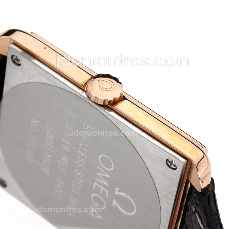 - Omega Tank Rose Gold Case with White Dial-Black Leather Strap-Sapphire Glass