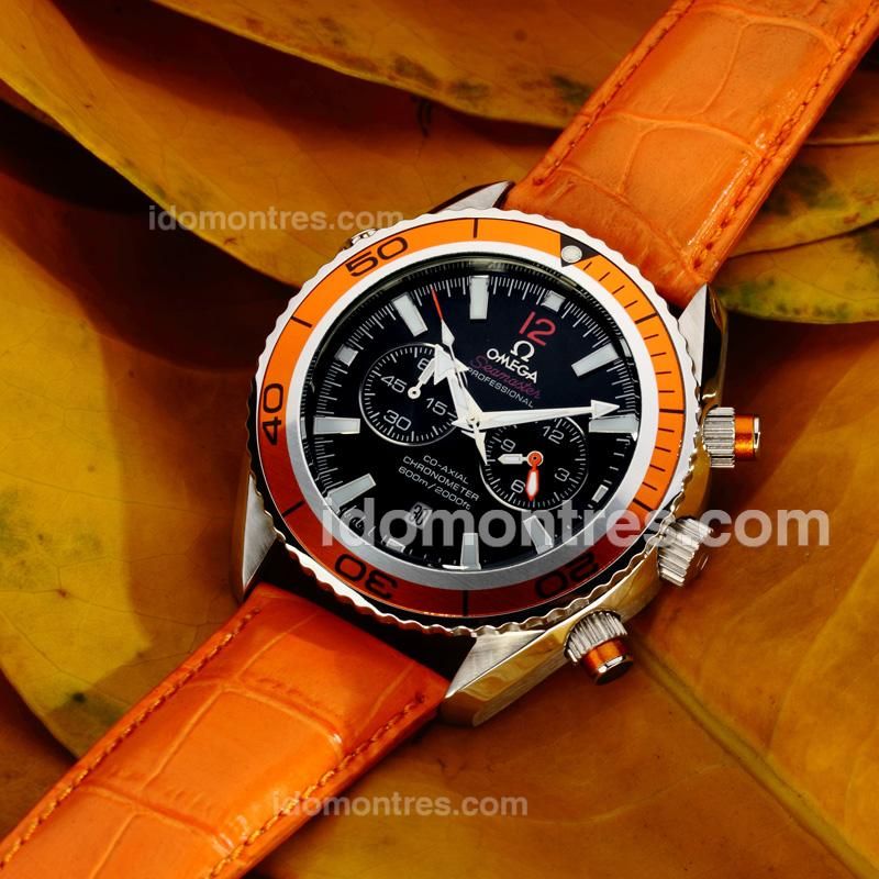 - Omega Seamaster Working Chronograph Orange Bezel with Black Dial-Orange Leather Strap(Gift Box is Included)