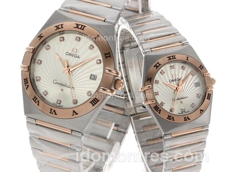 - Omega Constellation Swiss ETA Movement Two Tone Diamond Markers with Silver Dial