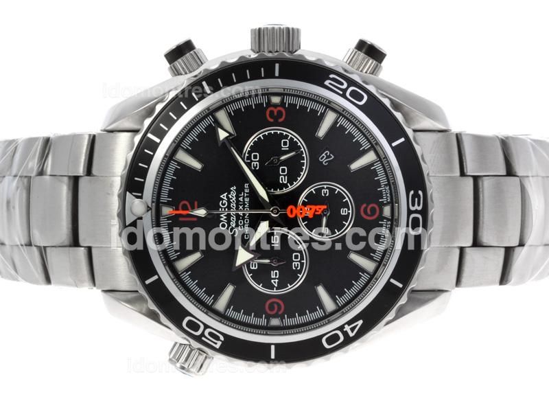 - Omega Seamaster Planet Ocean 007 Working Chrono with Black Bezel-Same Chassis As 7750-High Quality