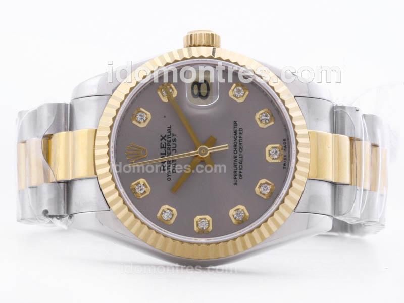 - Rolex Datejust Swiss ETA 2836 Two Tone Gray Dial with Diamond Marking -Mid Size