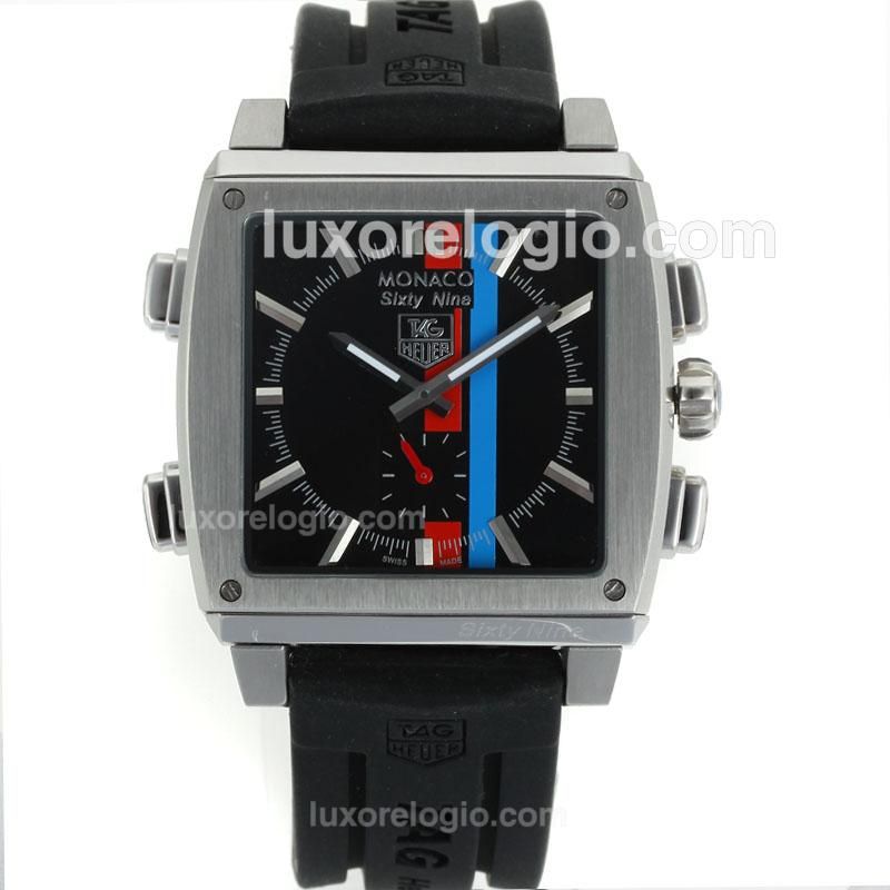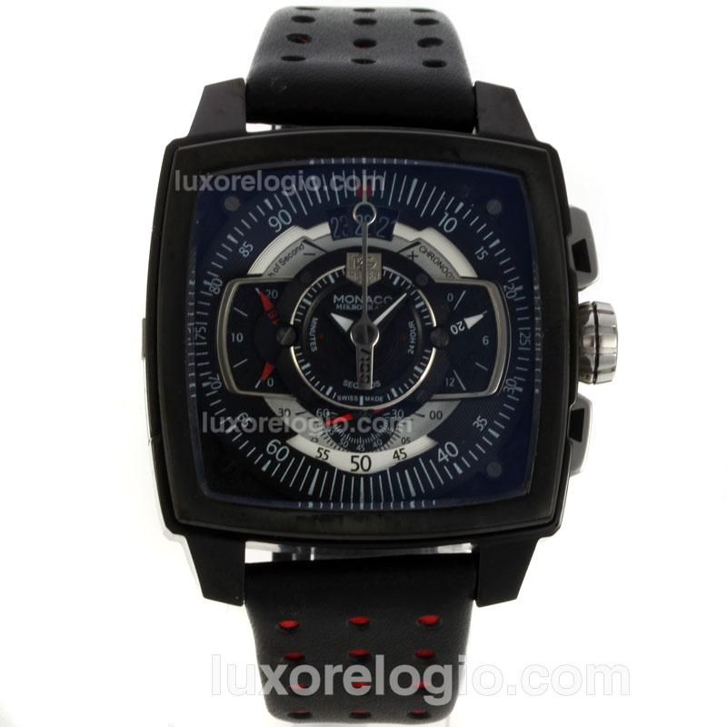 - Tag Heuer Monaco Working Chronograph PVD Case with Black Dial-Leather Strap