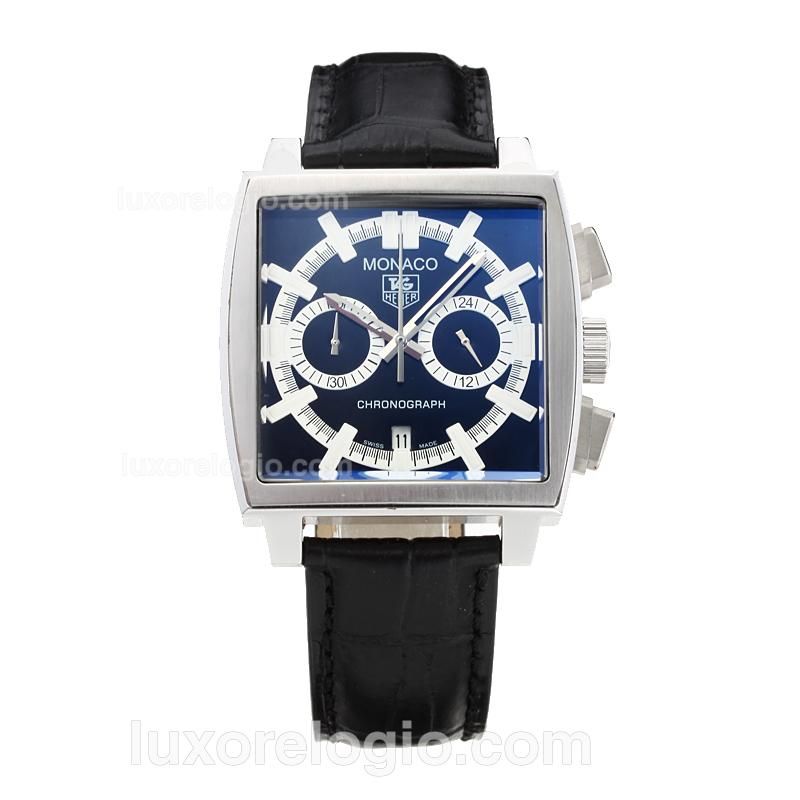 - Tag Heuer Monaco Calibre 17 Working Chronograph with Black Dial-Leather Strap