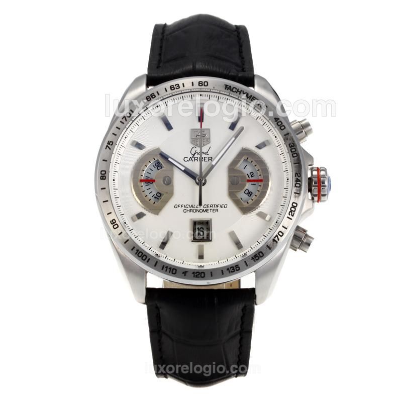 - Tag Heuer Grand Carrera Calibre 17 Working Chrono with White Dial-Same Structure As 7750-High Quality