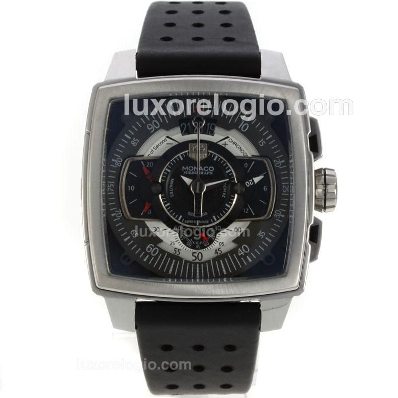 - Tag Heuer Monaco Working Chronograph with Grey Dial-Leather Strap