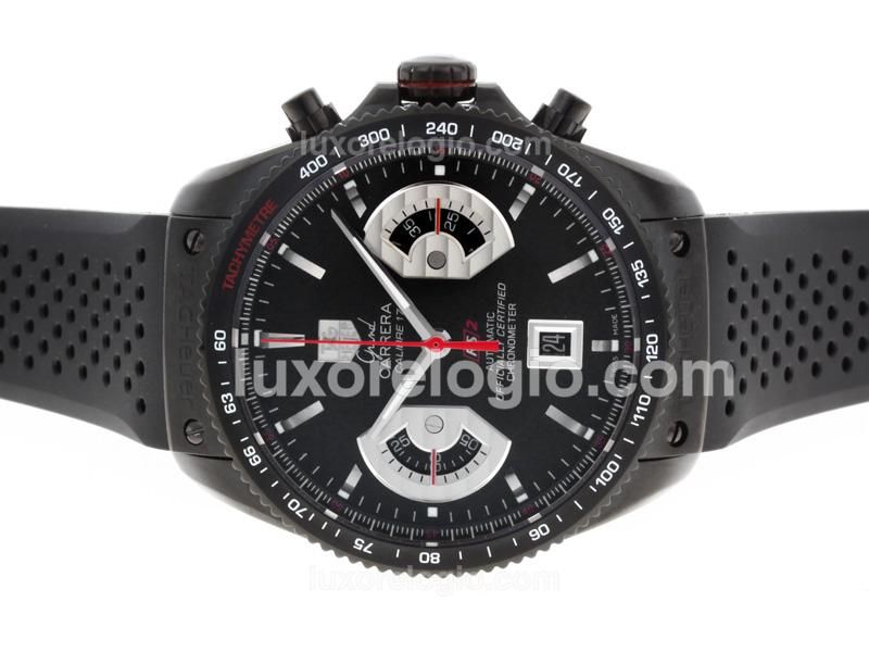 - Tag Heuer Grand Carrera Calibre 17 Swiss Valjoux 7750 Movement PVD Case with Black Dial-Rubber Strap
