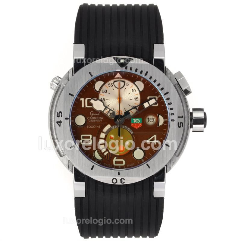 - Tag Heuer Grand Carrera Calibre 36 Working Chronograph with Brown Dial-Rubber Strap