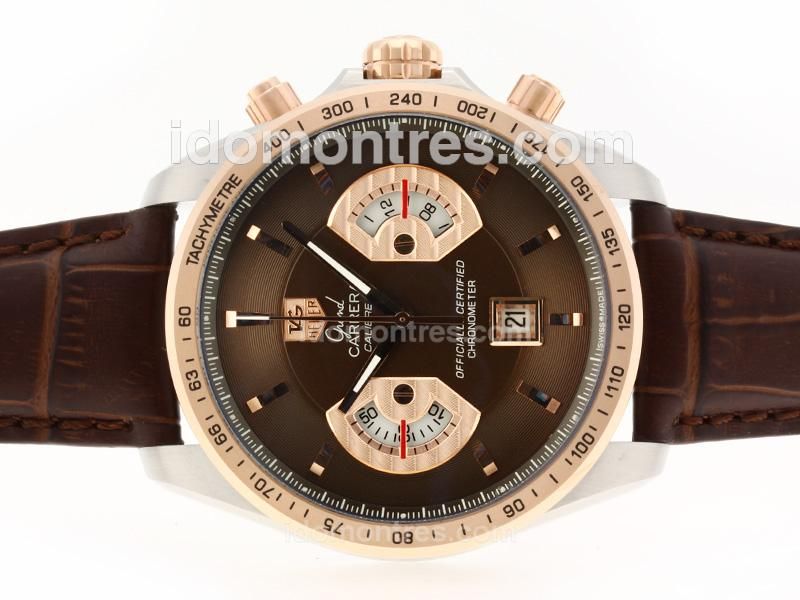 - Tag Heuer Grand Carrera Calibre 17 Working Chrono Two Tone Case with Brown Dial-Same Structure As ETA Version-High Quali