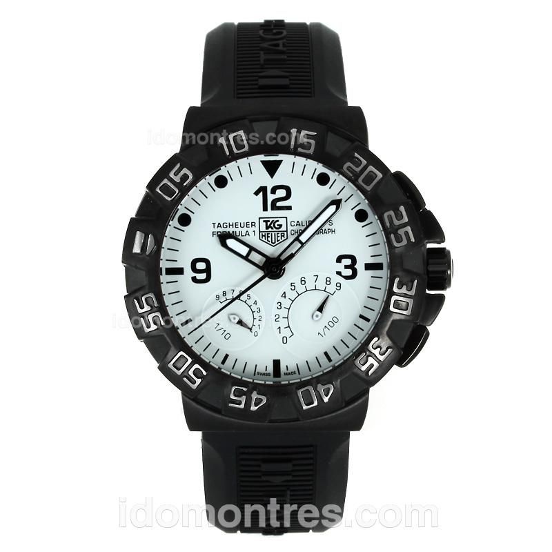 - Tag Heuer Formula 1 Flyback Function Working Automatic PVD Case with White Dial-Rubber Strap